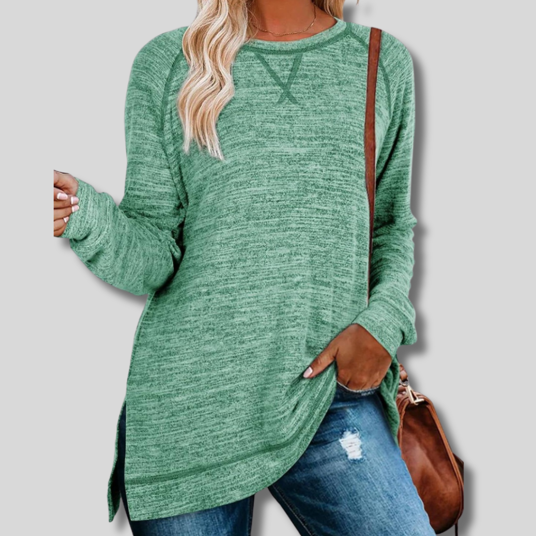 Alina-tunikaen kombinerer mykhet og enkel eleganse – perfekt for rolige dager eller avslappede utflukter.