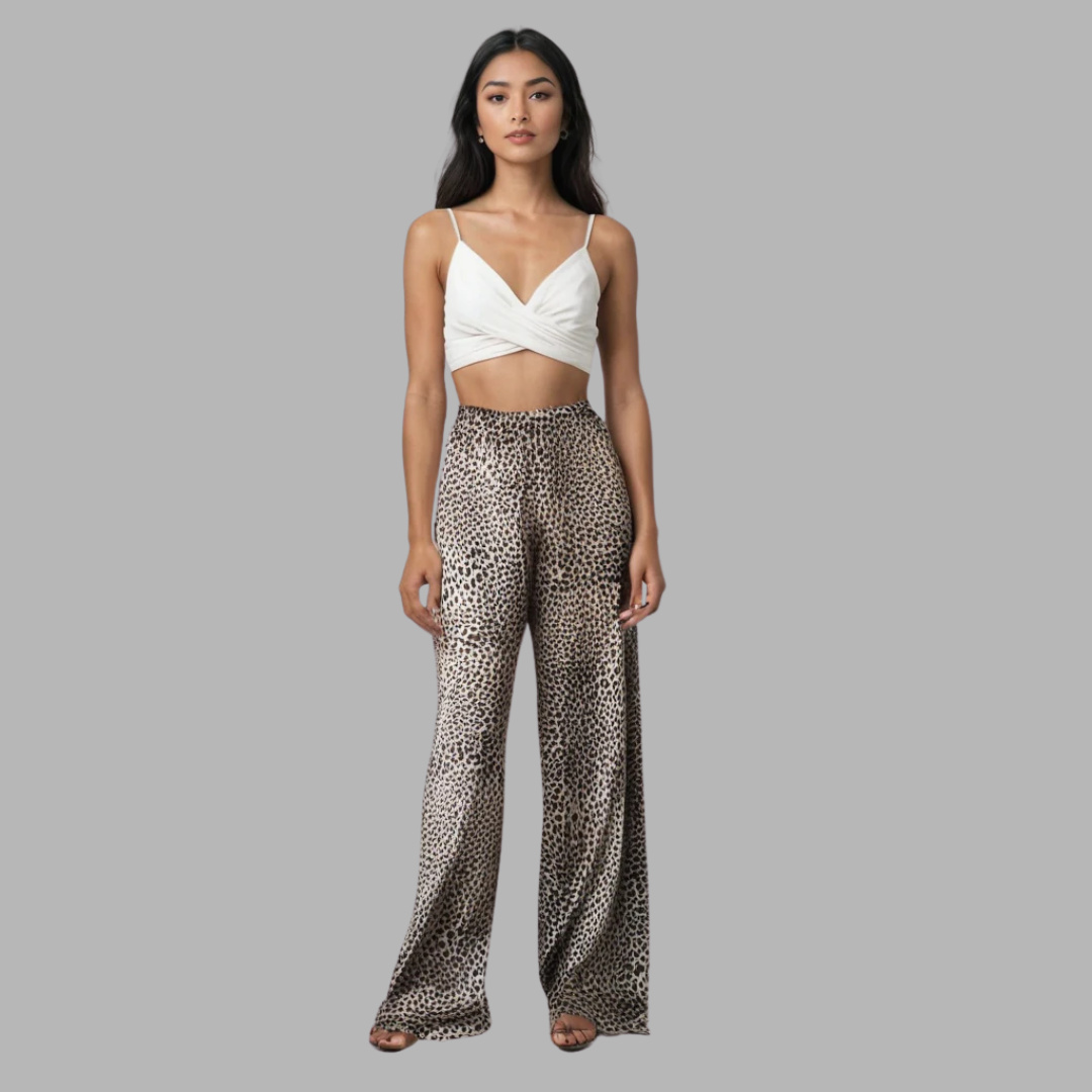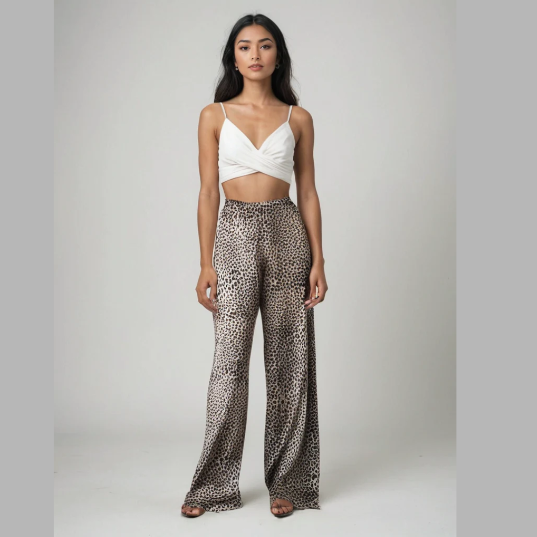 Gjør et statement med disse dristige, flytende leopardbuksene, perfekte for et trendy og komfortabelt utseende!